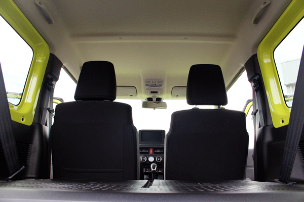ゆとりのあるコックピットはとても運転しやすくなりました!しっくりくるドライビングポジションに合わせたらこの通り!ジムニーの運転席は、ドライバーのための設計です。
