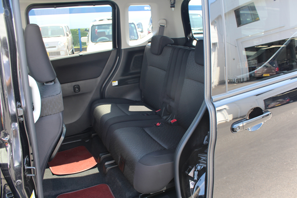 後部席が広々しているのでチャイルドシートもラクラクに装備できます。後ろに買い物袋など収納スペースも。