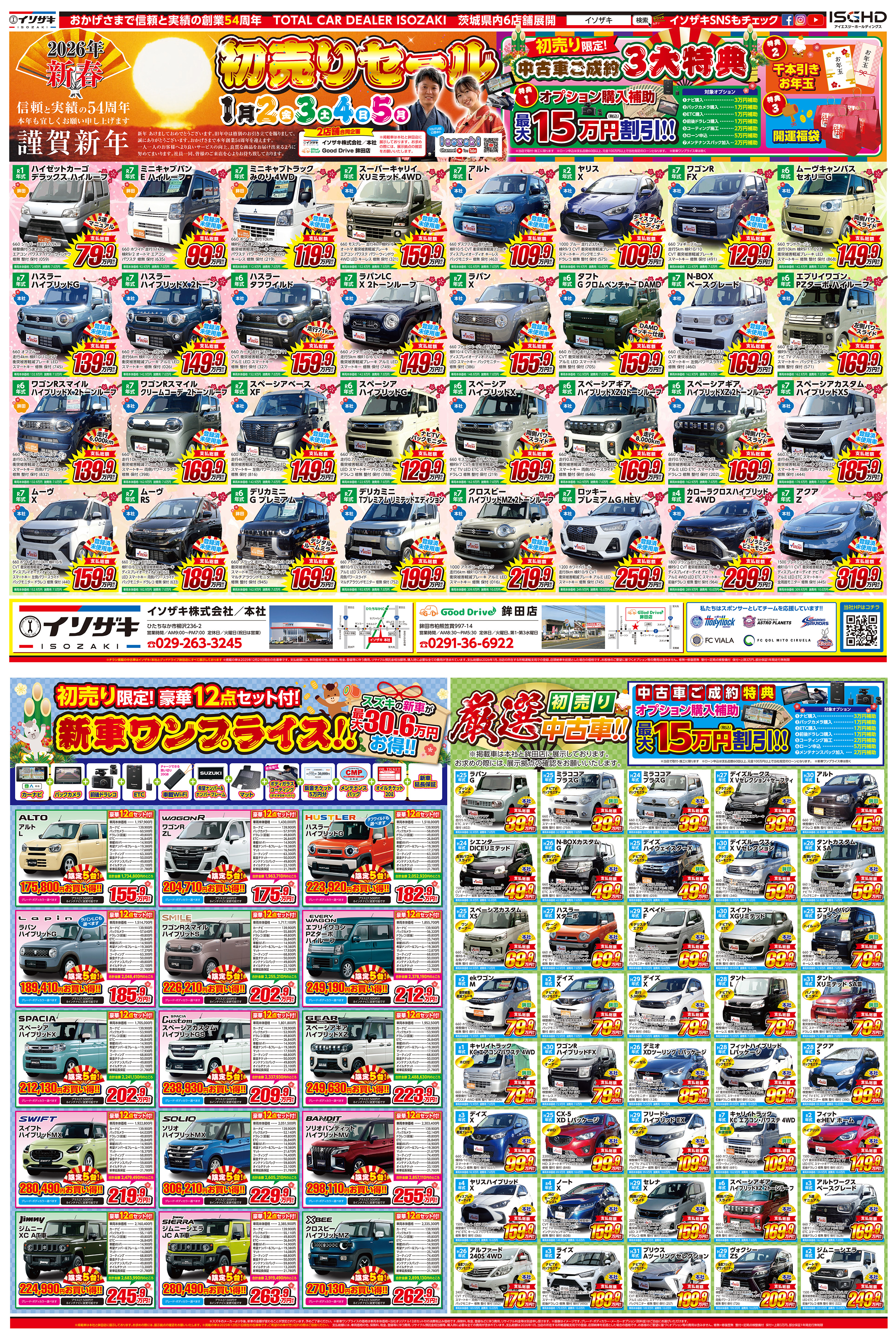初売り特選中古車/イソザキ本社・GoodDrive鉾田店初売り特選中古車/水戸桜の牧・北茨城東